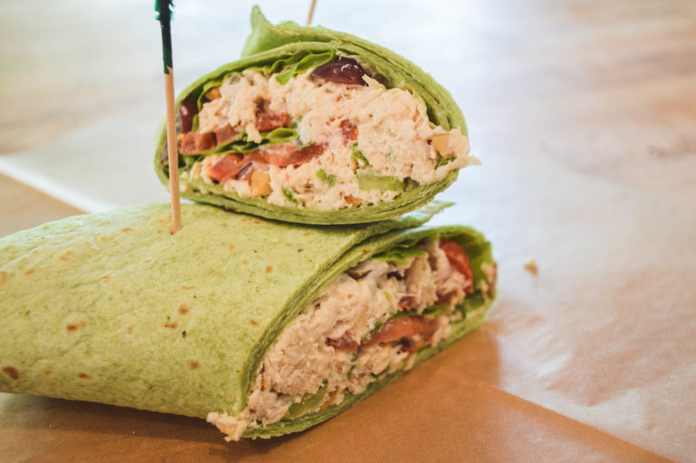 Tarragon Chicken Salad Wrap with lettuce, tomato & almonds